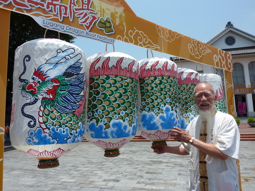 來薪傳獎燈籠大師吳敦厚懸掛手繪的龍舟燈籠,為活動祈福。