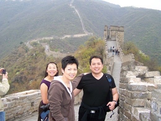 今天的長城遊不在八達嶺﹐而是去幕田峪﹐因為八達嶺經常參觀的人比較多﹐而且目前正在修路擔心塞車。慕田峪長城景觀也很棒﹐要先乘坐纜車上山頂﹐直接到達長城邊﹐很是方便。我們在長城走了約一公里﹐便返回原點﹐當然拍了許多的照片﹐記得聽誰說過毛澤東曾說“不到長城非好漢”﹐後來有人和了下一句“再到長城是笨蛋”。想起來也頗有道理﹐不曾來過的人一心想來看看﹐見過一次之後﹐相信不會有興趣長途跋涉再去參觀了。