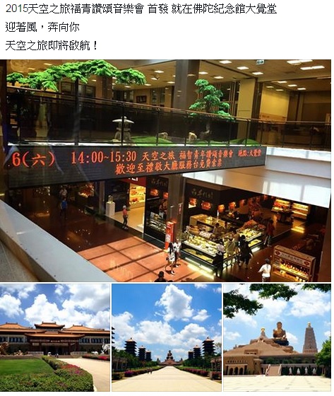 5月16日下午2點夢蓮花讚頌交響樂團及福智青年讚頌合唱團應福智佛教基金會的邀請,至高雄佛光山--佛陀紀念館大覺堂,舉辦「天空之旅演唱會」,許久未至大覺堂的星雲大師,親自蒞臨致詞,給了演出者、參加的聽眾最大的鼓勵。