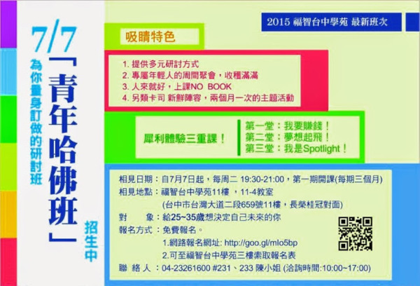 擁有大數據的未來,就是要哈佛!【週二-青年哈佛班】7/7實現夢想(主辦-福智台中淨智多元廣闊專案)