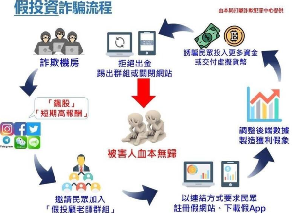 詐騙集團會先在各大網路平台物色被害人,扮演「想認真交往的暖男正妹」或「認識投資大神的小資男女」取得信任,再誘導他們加入封閉性的投資社群。