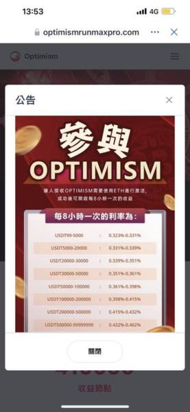 【詐騙通報】Optimism平台詐騙、代操作詐騙、投資詐騙、股票詐騙