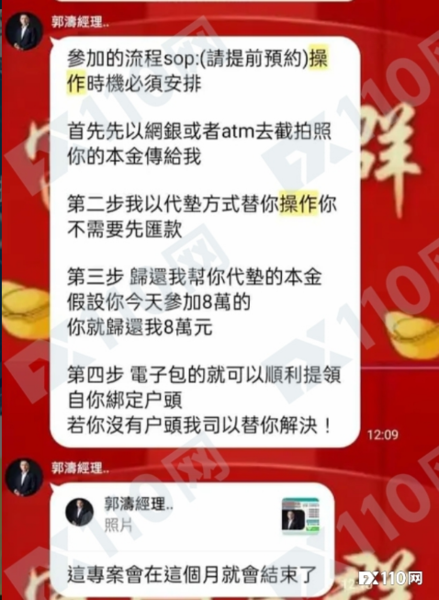 「郭濤經理」又稱要在官網賣出資產提領錢,要審核戶頭,匯友就把銀行帳戶、身份證資訊的照片都上傳到官網,然而,待匯友想要出金時,對方一拖再拖,最後居然將他踢出群組。