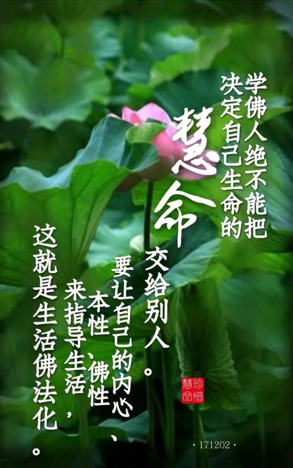 自己的人生由自己来决定。在生活中,坚定用自己的慧根,才能发现自己的智慧,千万不要被别人的意见牵着鼻子走,到最后将一事无成。好好掌握自己的正能量、正智慧,好好的跟着菩萨好好走,人身难得今已得,佛法难闻今已闻。