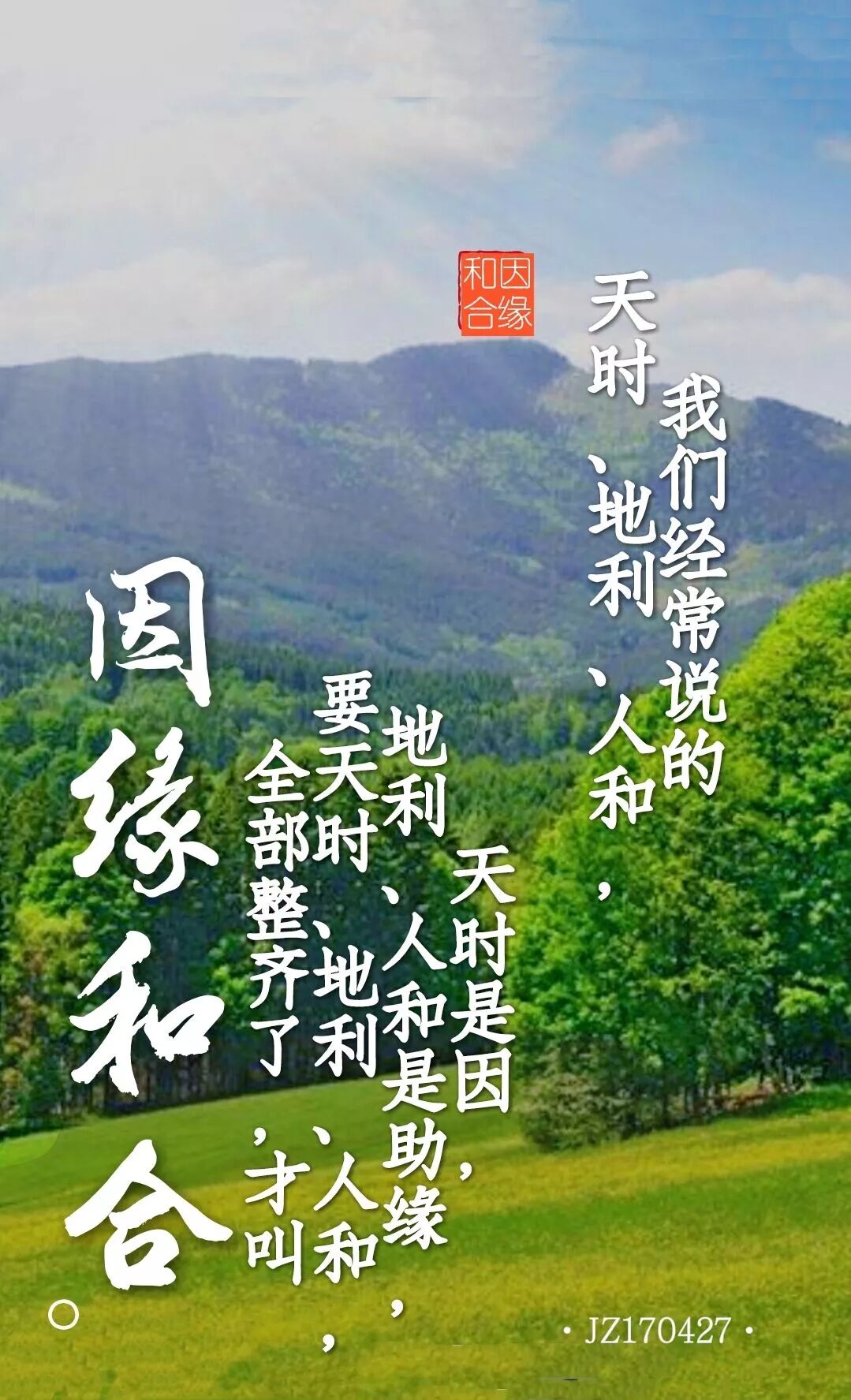 所以一个人没有天时、地利、人和,他得不到好的结果。就像一个小孩子读书想顺利地毕业,他必须努力加上天分,再加上师资的力量,学校的好坏,天时、地利、人和,才能得到好的果报。