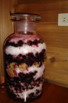 將成熟的桑椹果,最好先浸泡在純水內,以臭氧機氣泡石處理一小時,經滴瀝乾然後投入米酒內過酒(無臭氧機設備者,清洗後直接投入米酒,投入醋亦可,但醋的效果次佳),此動作旨在將容易含水的桑椹果內部殘水稀釋,避免因含過多水份致遭失敗。