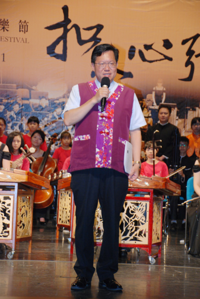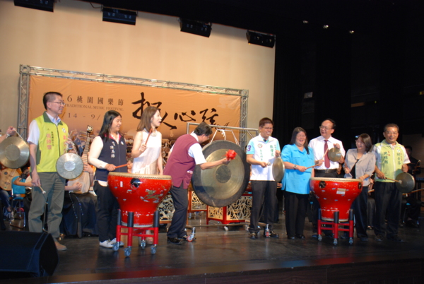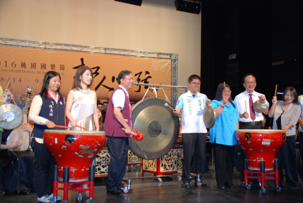 當日致詞後,率領現場出席來賓、各級議員、長官以及表演團隊進行啟動儀式,並由市長敲大鑼、文化局莊局長擊鼓與會貴賓立於彈撥樂器或手持彈撥樂器,共同敲鑼打鼓,啟動「2016桃園國樂節」。