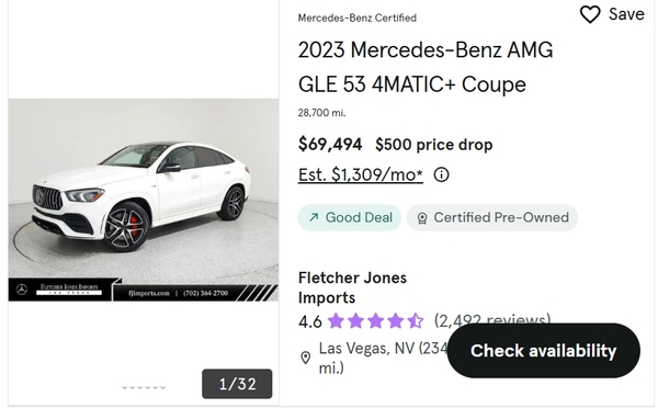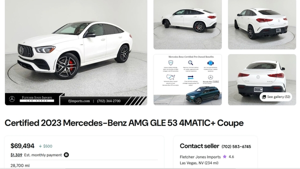 2023 BENZ AMG GLE53 COUPE 售價:69494美金。