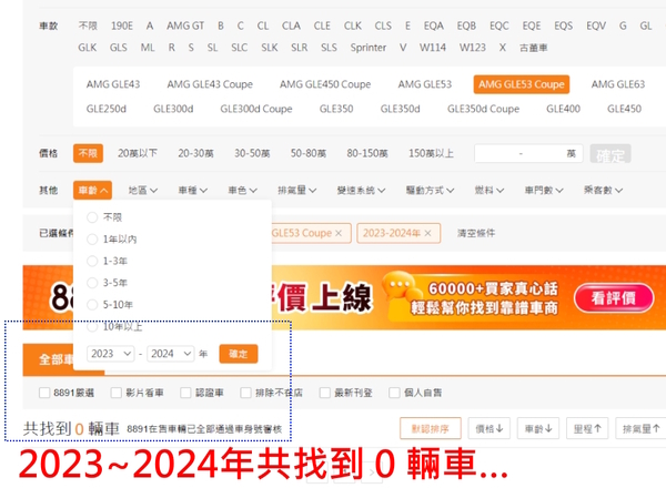 而外匯車2023 BENZ GLE53 COUPE如果辦到好是420萬,相信很多人都買不下手,所以你可以查一下台灣專門銷售二手車的網站,上面有幾台車在出售呢?