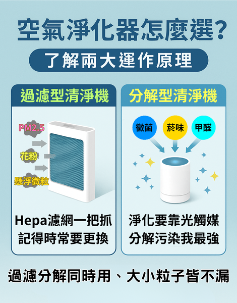 很多網友都知道,空氣清淨機分為二大類,第一大類是採過濾式HEPA濾網來過濾空氣中的雜質(???),譬如像是花粉、或是人人聞之色變的PM2.5;而第二大類就是分解型的空氣清淨機,目前的主流是利用光觸媒電...