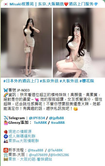 东京・大阪本地推荐 出差旅行 Telegram加入:@ttea888 或加:@FB8843 网站入口 https://jp84434.com 日本正妹情报局 真实体验|预约制服务 东京・大阪官方入口 https://jp84434.com/ Misaki桜雅苑|东京.大阪精选-酒店上门服务