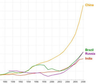 體是在1989,中共、俄國、印度和許多過去的共產國家開始加入全球市場;而世界關稅和貿易總協定(GATT)改制為 WTO 是在 1995年1月1日,使得早已開始的全球化貿易被加速推動。結果是製造業大規模移動到新興國家,使得 OECD 國家的經濟失去底部支撐而成長率逐漸下滑並造成失業率上升;而新興國家則得到大量的資金挹注和國外市場,經濟蓬勃擴張。