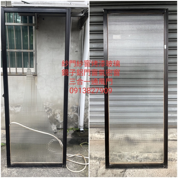 新北市汐止康寧街打破玻璃強化玻璃烤漆玻璃鏡子更換方格玻璃0913827909紗門紗窗 摺疊紗窗鋁門窗氣密窗房間木門浴室塑鋼門廚房三合一通風門換不銹鋼紗網
