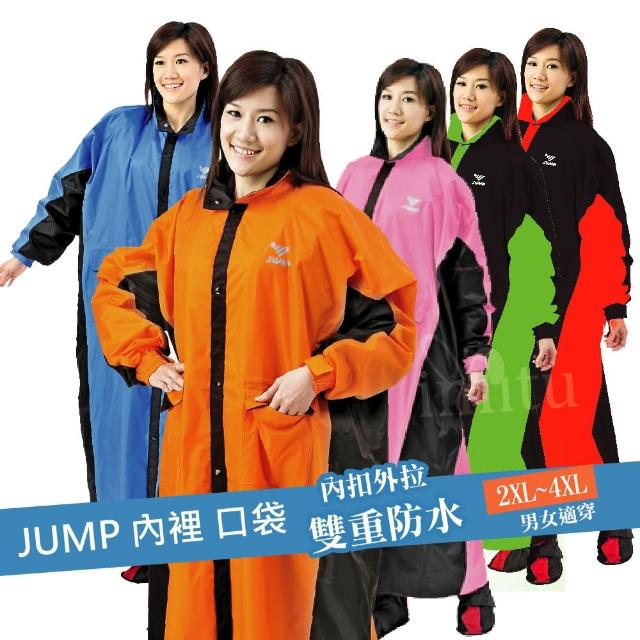 雨傘推薦2018【JUMP】新帥前開配色 內裡 口袋連身型雨衣(2XL-4XL_JP3469)mobile01討論區評價