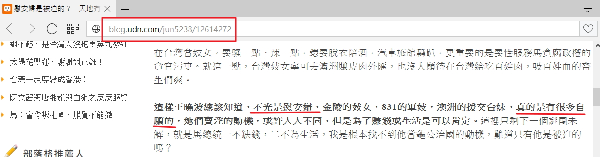 李德俊jun5238「慰安婦是被迫的?天地有政氣udn部落格」 說慰安婦很多是自願的,譴責!