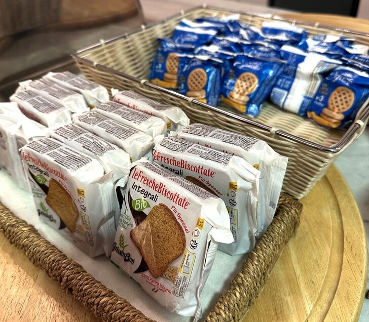 餅乾在義式早餐中是另一個常見的食品選擇。有些人喜歡在餅乾上塗上榛子醬Nutella來增添甜味,這種組合讓早餐更加美味。一些人也會將餅乾浸泡在熱牛奶中食用,這種方式通常更受小朋友的喜愛。許多地方也會提供獨立包裝的硬麵包片,供客人用來沾果醬吃,這樣的搭配同樣是簡單而美味的選擇。