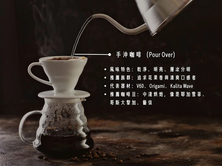 手沖咖啡就像是手工煮湯,用精準的注水方式調出你想要的層次與甜感。適合風味控與咖啡筆記愛好者。