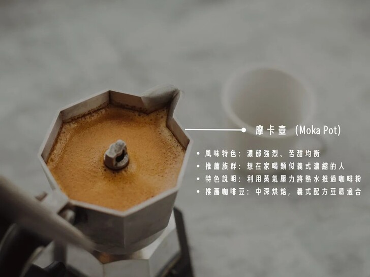 摩卡壺是一台廚房裡的迷你咖啡機,適合拿鐵、卡布奇諾基底使用,也能純飲感受濃醇。