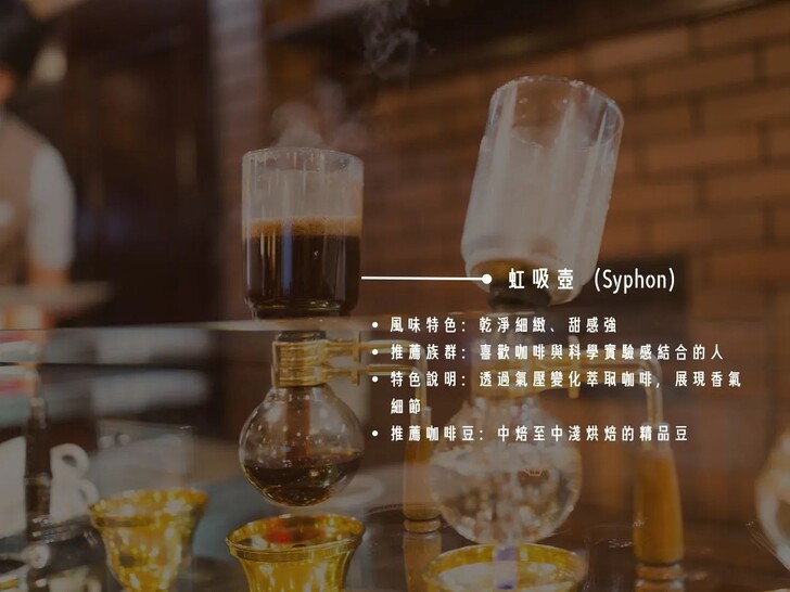 虹吸壺像是一場表演,也是咖啡實驗室裡的魔術師,非常適合品鑑型飲用與風味比對。