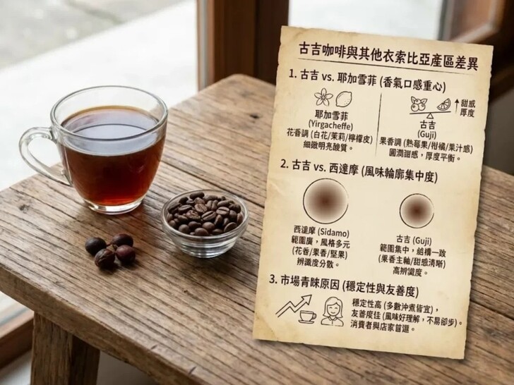 1.古吉咖啡和耶加雪菲差異,在於香氣取向與口感重心
