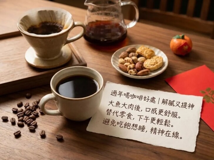 以前提到過年,大家第一個想到的多半是泡茶、喝飲料,但這幾年你會發現,過年喝咖啡的人真的越來越多了。不只是年輕人,連不少長輩也開始習慣在年節期間來一杯咖啡。其實仔細想想,過年喝咖啡好處真的不少,不管是搭配年菜、配甜點,還是親友聊天時喝,都很剛好。這篇就從生活角度出發,帶你一次看懂為什麼年節喝咖啡會成為新常態,也順便告訴你過年咖啡怎麼喝比較舒服。