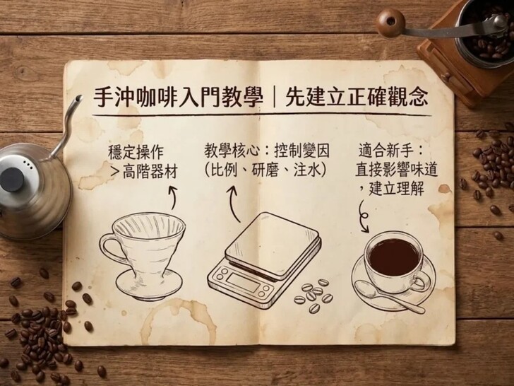許多新手在學手沖咖啡時,會先把注意力放在高階器具或昂貴配備上,但其實手沖咖啡入門真正的關鍵,在於能否穩定重現相同的沖煮條件。只要每一次的水量、比例與注水方式一致,即使是入門等級的手冲咖啡器具,也能沖出風味乾淨、表現穩定的咖啡。對新手來說,比起追求器材升級,更重要的是先把基本操作做穩,讓每一杯咖啡都能作為學習的參考。