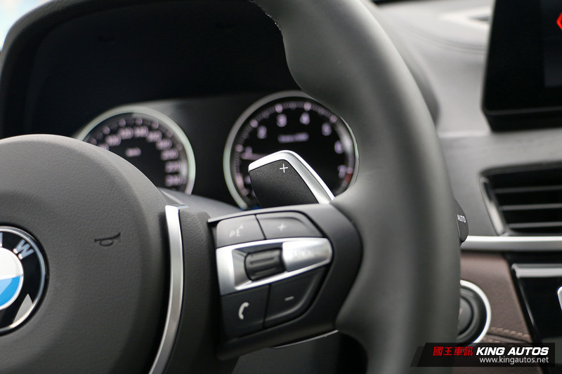 此外,為了強化內裝質感,試駕車型同樣透過選配方式,將原本為Sensatec皮質包覆的座椅升級成Dakota真皮材質 (6.4萬元),而且還延伸至前後門板、中央扶手、中控儀表台等處,並搭配同樣需要選配的Fine-wood橡木紋飾板 (2萬元)、包覆及腿部支撐性較佳的雙前座跑車座椅 (3.2萬元),M款多功能真皮方向盤在改款後則被列為全車系標準配備,但X1 sDrive 18i車型少了方向盤換檔撥片。