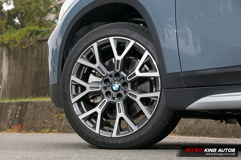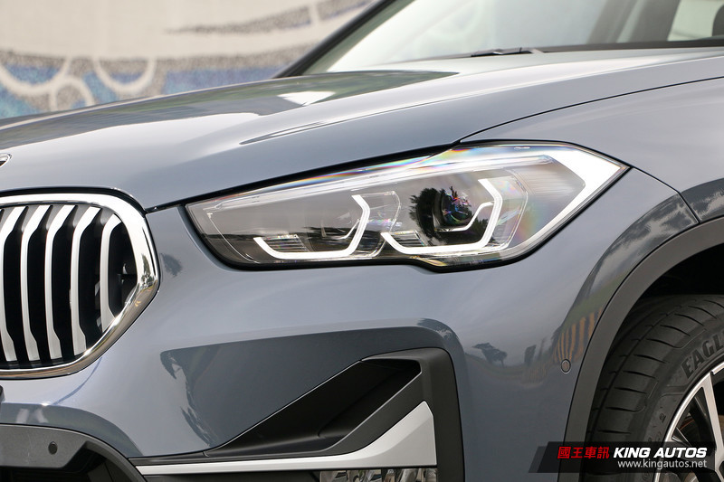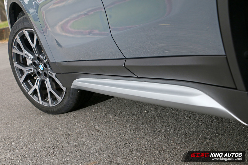 不過此次所試駕的X1 sDrive 20i車型,除了原本的標準配備之外,其實還加選了內含前後銀色下護板、銀色下氣壩飾條、銀色車側飾條、緞面鋁質水箱護罩的xLine風格套件 (14萬元),以及LED前霧燈 (1.3萬元),車色也選用BMW Individual系列的Storm Bay Grey金屬漆 (3.2萬元),再將18吋輪圈升級至19吋 (3.2萬元);而改款後的差異在於前保桿重新設計,將兩側進氣孔面積放大,過去為BMW X休旅家族特徵的圓形前霧燈也跟著消失。