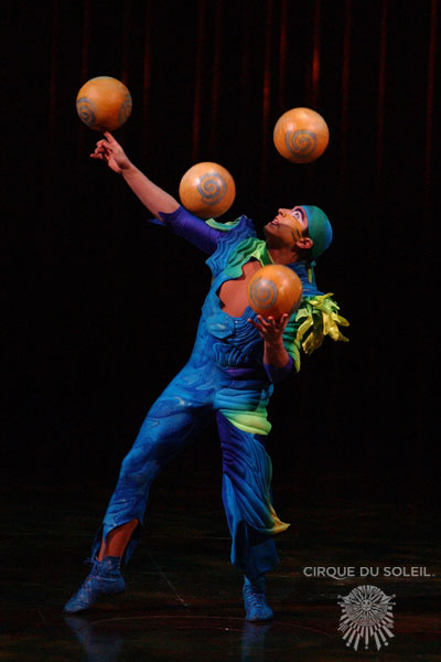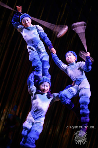 東方雜技團在「Varekai」中的演出。3位小演員,快速掄轉線球,空中拋接,換位拋接。雖然是小孩子,他們五顆星難度的演出,真是讓同是東方人的我們感到驕傲!