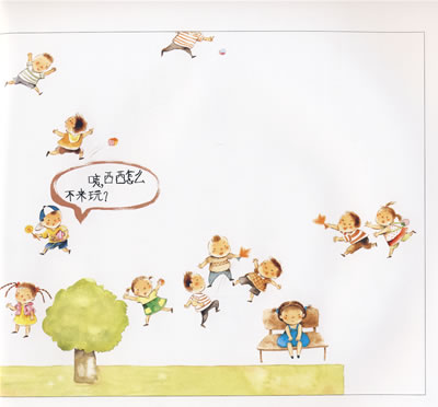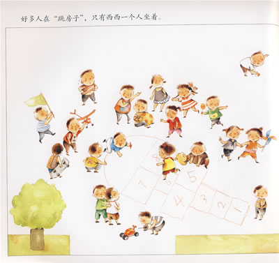 誰也不會想到,《西西》的構思來源於一個夢。那天午睡起來,腦子裏還清晰地記得夢中的情景:很多很多的「小人兒」,開開心心地一起玩,只有一個小女孩,靜靜地坐在那裏。夢醒後,我衝到書桌前,抓起紙和筆,不讓夢溜走。