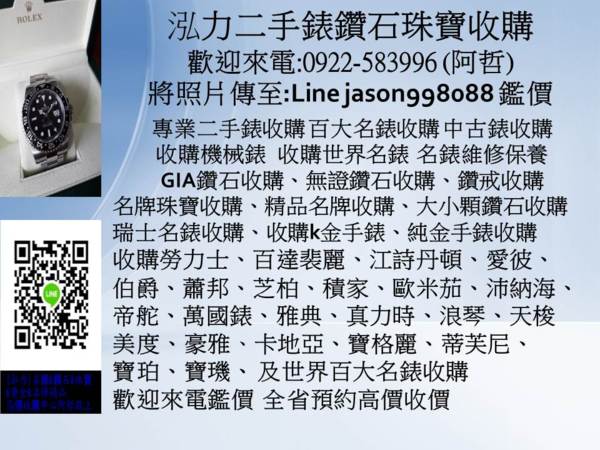 全省高價收購專線:0922583996 阿哲 泓力二手錶鑽石珠寶收購