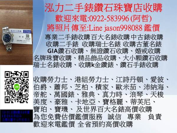 全省高價收購專線:0922583996 阿哲 泓力二手錶鑽石珠寶收購
