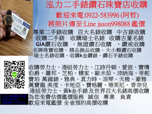 全省高價收購專線:0922583996 阿哲 泓力二手錶鑽石珠寶收購