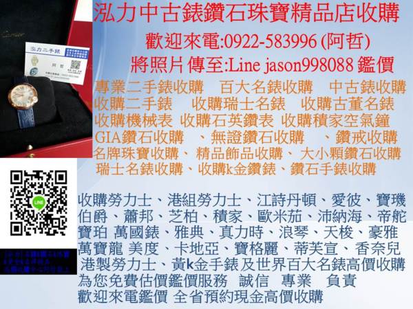 全省高價收購專線:0922583996 阿哲 泓力二手錶鑽石珠寶收購