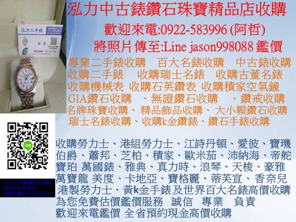 全省高價收購專線:0922583996 阿哲 泓力二手錶鑽石珠寶收購