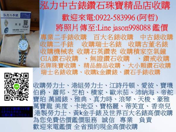 全省高價收購專線:0922583996 阿哲 泓力二手錶鑽石珠寶收購