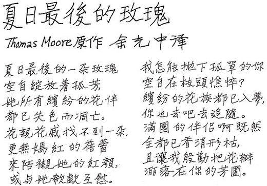 【聯副】夏日最後的玫瑰/Thomas Mooreh原作/余光中譯