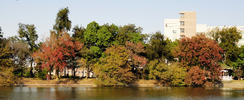 突然看見許多工人在扶正那被颱風吹倒的行道樹,工人總是先把樹的枝葉鋸去,