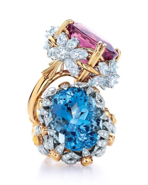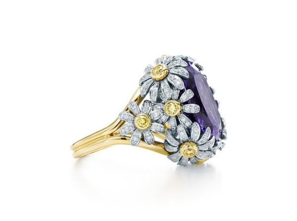 Schlumberger雛菊戒指,18K金與鉑金鑲嵌11.30克拉枕形丹泉石、黃鑽與白鑽 ,236萬元。