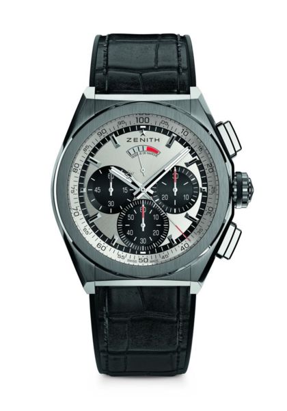 真力時DEFY系列El Primero 21計時碼表,鈦金屬表殼搭配黑、銀雙色表盤,約34萬4,200元。