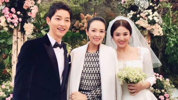 宋宋CP婚禮上與好友章子怡合影,意外讓人看到喬妹的戒指,Bee my love系列的設計線條辨識度頗高,簡單優雅。圖/摘自章子怡微博