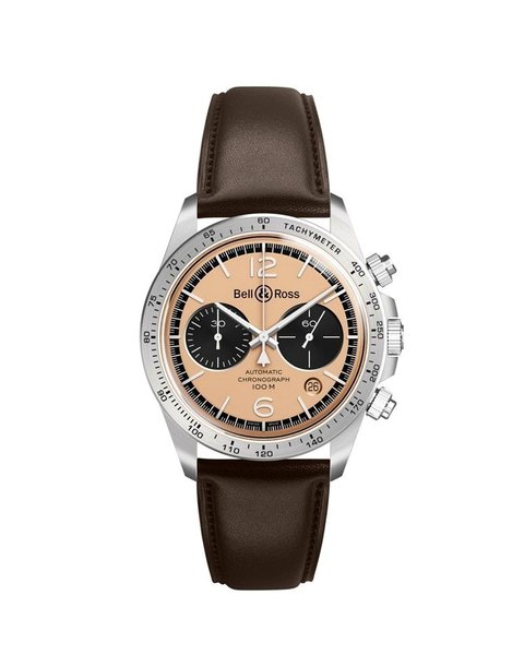 Bell & Ross則對高速賽車的熱情發揮到極致,打造自豪的全新Bellytanker車款,並推出同名系列計時碼表。品牌採用五〇年代的賽車為靈感創造,同時也把這樣的概念帶進表款中,因此這限量500只的腕表,有著迷人的復古外觀。全新Bellytanker系列BR V2-94表,有著被稱為「熊貓」的對比色計時盤,與Bellytanker車的顏色相呼應,表盤的金屬銅色源自賽車輪軸,分鐘軌道上的黑色線條細節也可在賽車的車頭上看到。