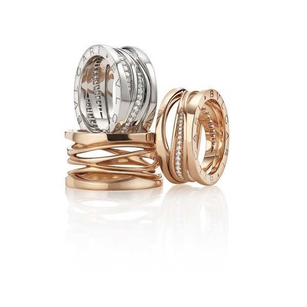 B.zero1 Labyrinth 迷宮系列、Zaha Hadid Design by Legend傳奇系列與白K金鑲鑽款(上)。圖/BVLGARI提供