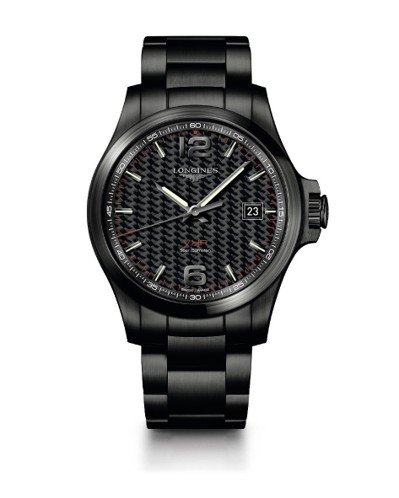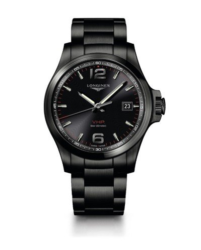 浪琴表全新征服者系列V.H.P.腕表,其實早在去年3月就曝光,不過由於太過搶手,以至於總廠今年才有機會出貨到台灣。這系列表款,因爲採用比經過瑞士天文台認證石英表還要精準20倍的石英機芯,而且固定每3天就會透過GPD系統校正對時、連續4年不用更換電池,以及配有智慧表冠、萬年曆等功能,深受消費者的喜愛。 此次抵台的新品皆為不鏽鋼表殼、表鍊加上黑色PVD塗層,並有著同色碳纖維表盤的款式,搭配紅色小秒刻度,既顯眼又帥氣。