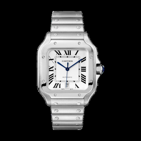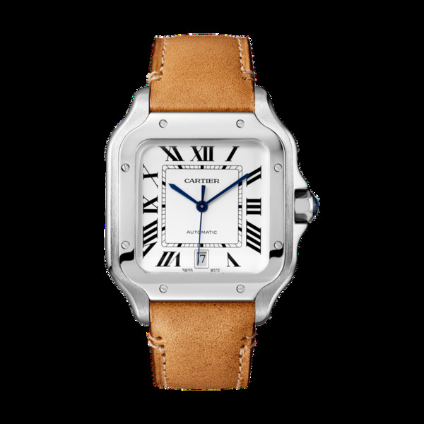 Santos de Cartier 精鋼大型款腕表,QuickSwitch 可更換式表鍊附小牛皮表帶,21萬1,000元。