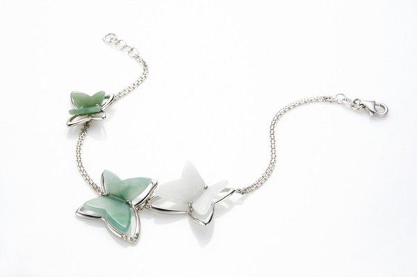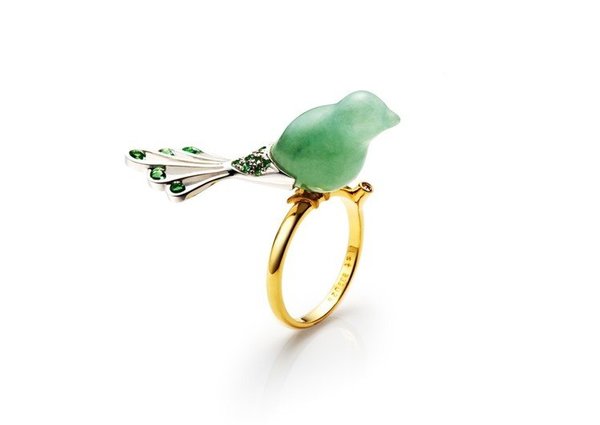 設計師眼中的春天各有風情,林曉同設計師便選用綠色來迎接春天,運用綠色系寶石如翡翠、綠碧璽、沙佛萊石等,設計出寓意幸福喜悅的蝴蝶和翎雀,從戒指、手鍊到項鍊,容易混搭配戴,讓春日的活潑浪漫相隨。