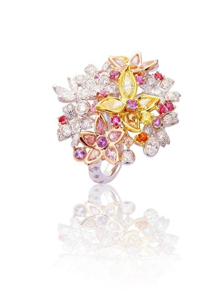 春天也是戀愛的季節,對珠寶設計師Anna來說,櫻花,是她在紐約布魯克林植物園的甜蜜戀愛記憶,讓她感受到暖暖幸福,因此以櫻花的花語:「生命、幸福、一生一世永不放棄。」設計出「春之櫻」系列作品。有別印象中粉色櫻花印象,ANNA HU結合陽光、櫻花、與蝴蝶的賞花印象打造戒指與耳環,選用白金、黃金與玫瑰金三種不同K金,並鑲嵌白鑽、粉鑽、黃鑽、紅寶以及祖母綠,不僅帶出春日花團錦簇也讓人倍感奢華爛漫