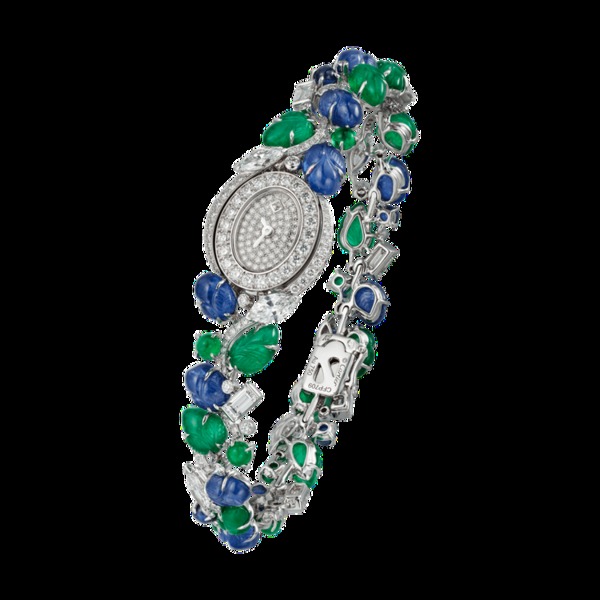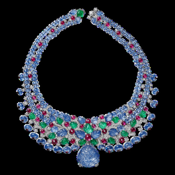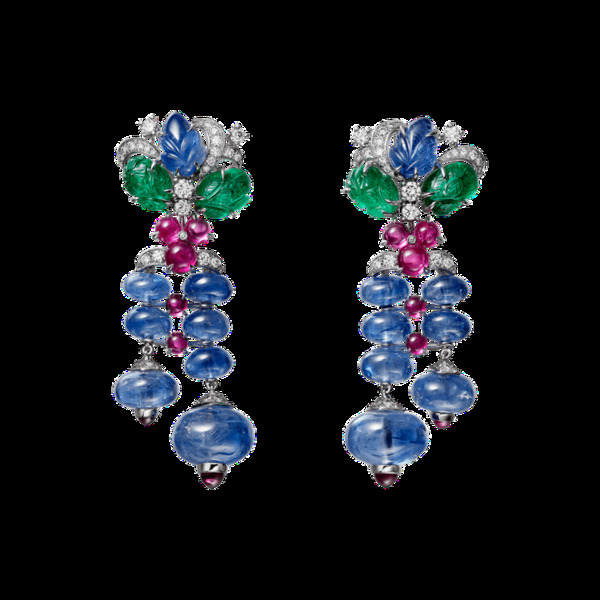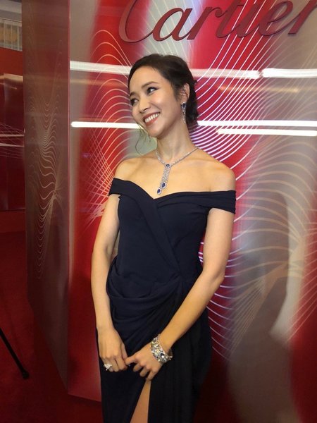 香港女星楊采妮特地來台參加此次晚宴,身上配戴彼得潘領造型的「水果錦囊」Tutti Frutti項鍊,在典雅中又帶點俏皮。她表示因為顏色繽紛看起來很喜悅,近看手工雕刻相當精緻,以前較少戴過這麼鮮豔的珠寶,「顏色可以mix這麼好,其實很少見。