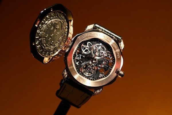 寶格麗Octo萬年曆陀飛輪鐘樂報時大自鳴腕表,18K玫瑰金表殼,全球僅一只,約2,208萬元。圖/寶格麗提供