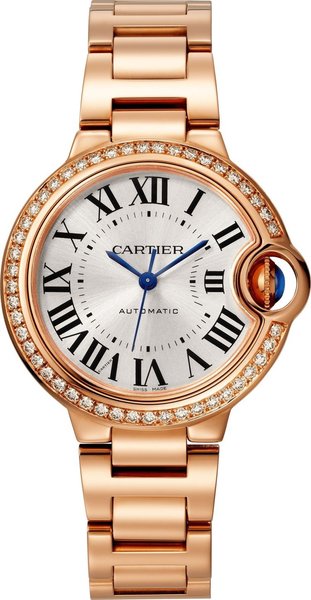 Ballon Bleu 33毫米鑲鑽表殼搭配玫瑰金表鍊,88萬元。圖/卡地亞提供